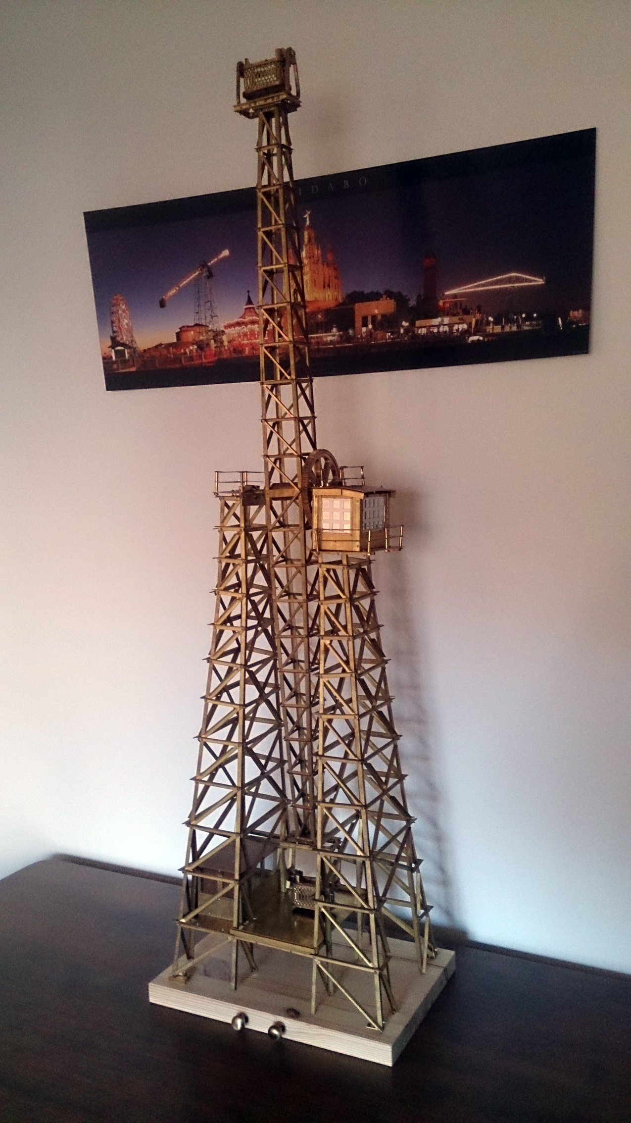 Treball de maqueteria, fet basicament amb llautó i tornilleria. Llarg, mes de dos anys. Dificultós: excepte les mesures a peu de terra de l´original, al no tenir planells ni haber-los conseguit, tota la resta està calculat sobre fotografies. La escala es aproximada, i de vegades, ni s´acosta a la que hauria de ser.
