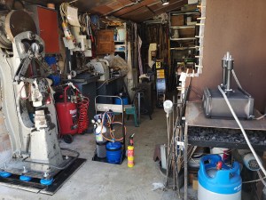 Com a darrera entrada de la temporada, aviat vacances, yupii…, poso una foto de familia de les adquisicions que he fet per potenciar el tema forja, que tinc una mica deixat. La peça final, ha sigut aquest soldador d´oxigen i butà, que a més, talla el metall (una mica, ja se que l´acetilè talla mes) i escalfa el metall correctament i al contrari de la forja, en llocs molt concrets. Fins ara havia passat amb el petit, groc, de lampista, que per feines de forja quedaba molt curt, fins l´extrem que algunes peces, si no volia encendre la forja, per doblegar-les, preferia fer-ho a cop de martell en fred, que amb aquell bufador petitet. Aquesta pista em va fer concloure que necessitava l´equip.