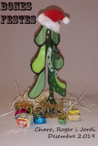 Edito, ara, primers de febrer, la entrada per afegir una foto de la lámpara gairebé acabada. Ha de canviar, perqué al penjar-la anirà al revés. Però amb llum ja es va veient com quedarà.