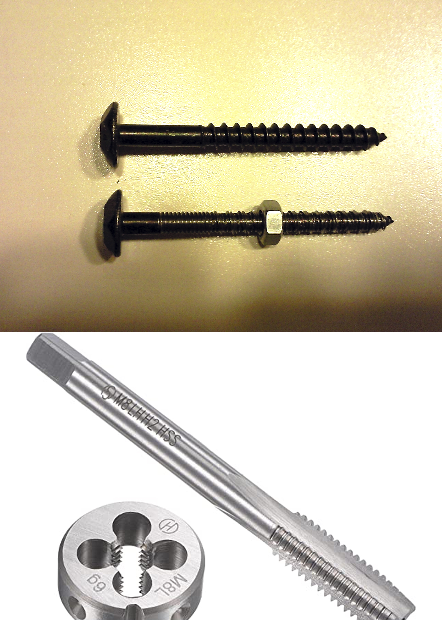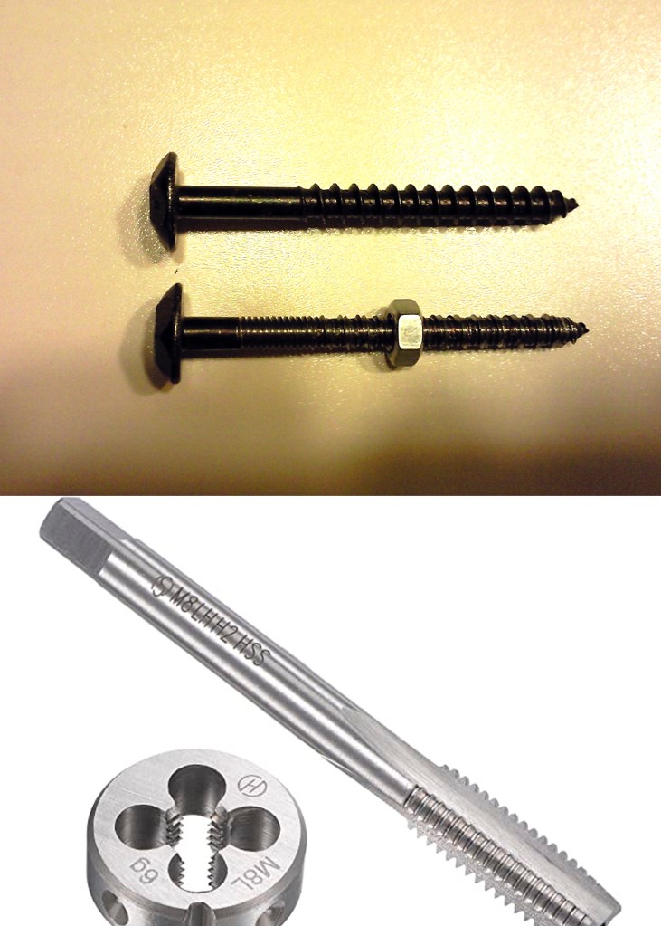 Faig aquest post per explicar que es pot convertir un cargol per fusta, de punta, en cargol mètric, per poc que el diametre s´apropi a una mètrica convencional (M3, 4, 5 , 6 etc.)