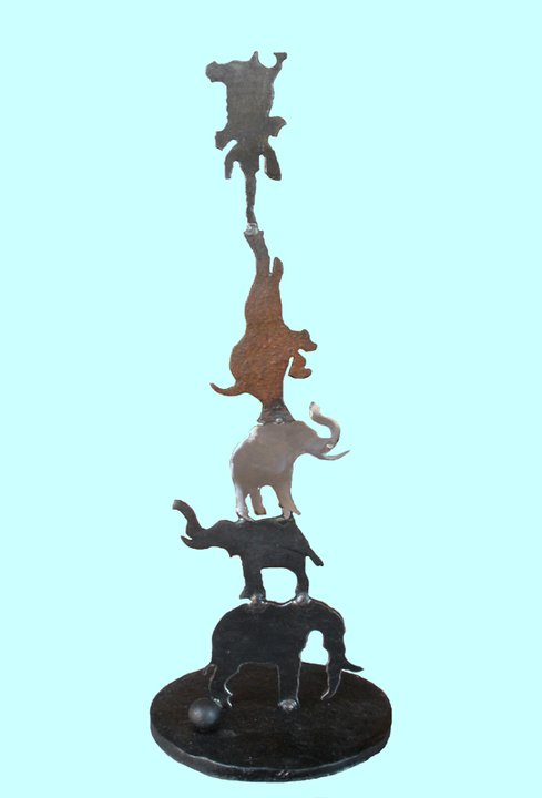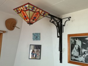 Aquestes paletes, de ferro forjat i tallat amb plasma, tenen, apart l´us decoratiu, el us primari de centrar un lloc concret, dins una exposició (de pìntura o de altres coses), on l´artista deixa les seves targetes perque el públic les pugui agafar. En vaig fer quatre, i he regalat tres. Ara que ja està entregada la tercera puc publicar el treball.