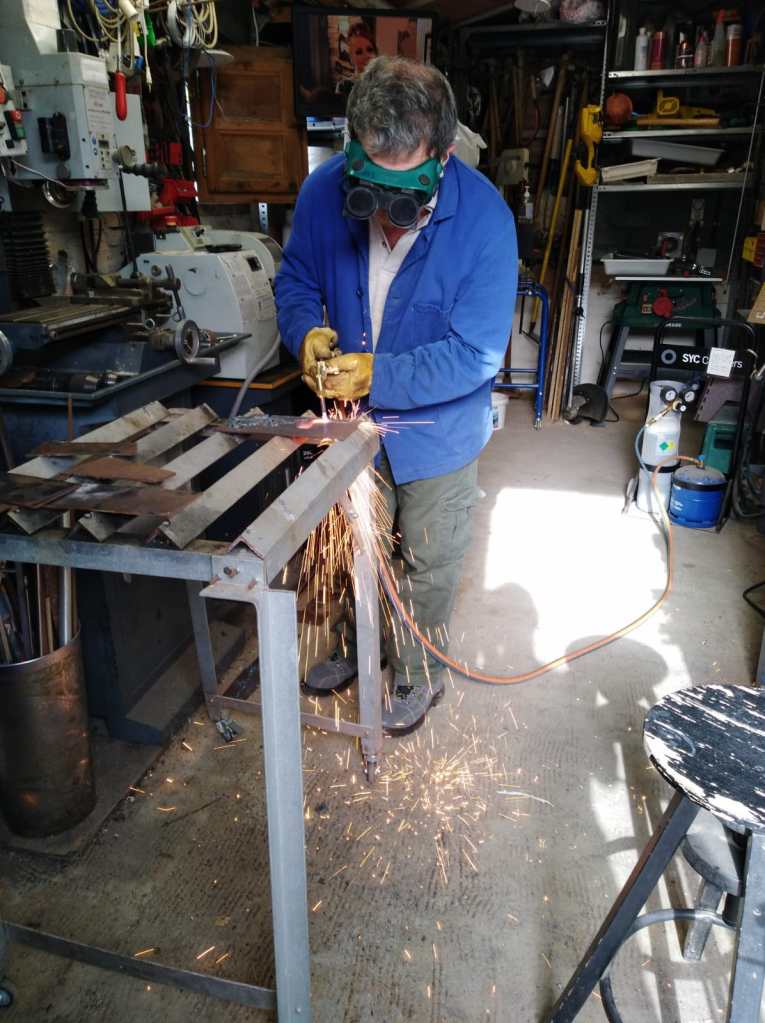 Aquest paravent, fet per separar la rampa de vehicles, del terreny, el vaig començar a l’estiu de l’any passat, fent tot el metall, excepte la peça perfilada. I aquest estiu l’he acabat fent: un skyline de Tarragona, fresat amb ferro cortén de 3 mil·límetres.