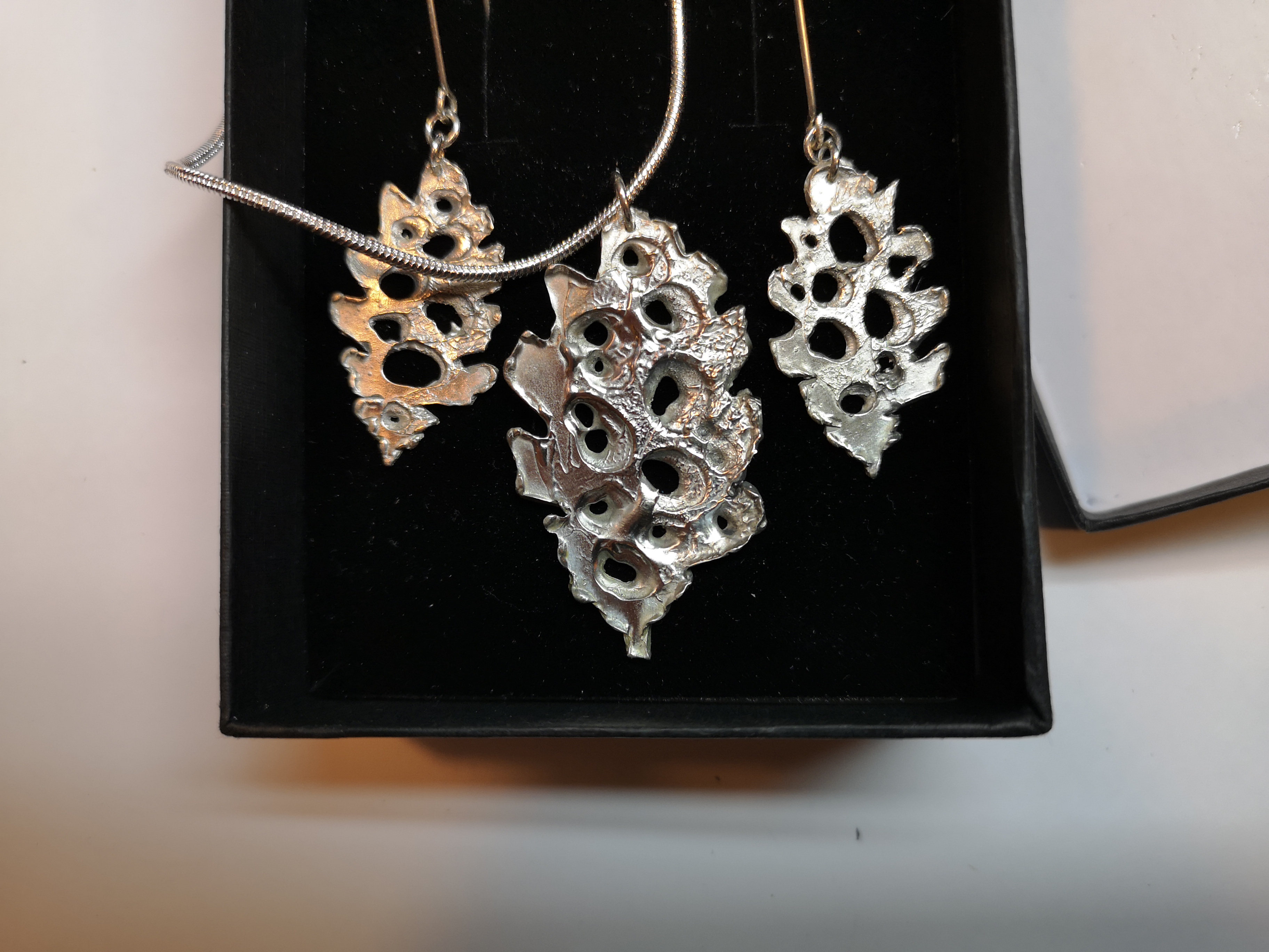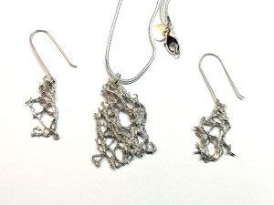 Aquest es un conjunt de plata, fet amb la técnica de la cera perduda, recentment  acabat, i es basa en fulles de forma runcinada (lobulada). Forma part d´una col-lecció mes amplia, de potser una dotzena   o dotzena i mitja de parells o jocs, sobre tot d´arrecades, molts amb esmalt. He usat un sortit de fulles diferents, i he de  reconeixer  que la botànica dona per molt per ajudar la inspiració. Us seguiré ensenyant alguns jocs  mes  en les properes setmanes. Espero que us agradi.