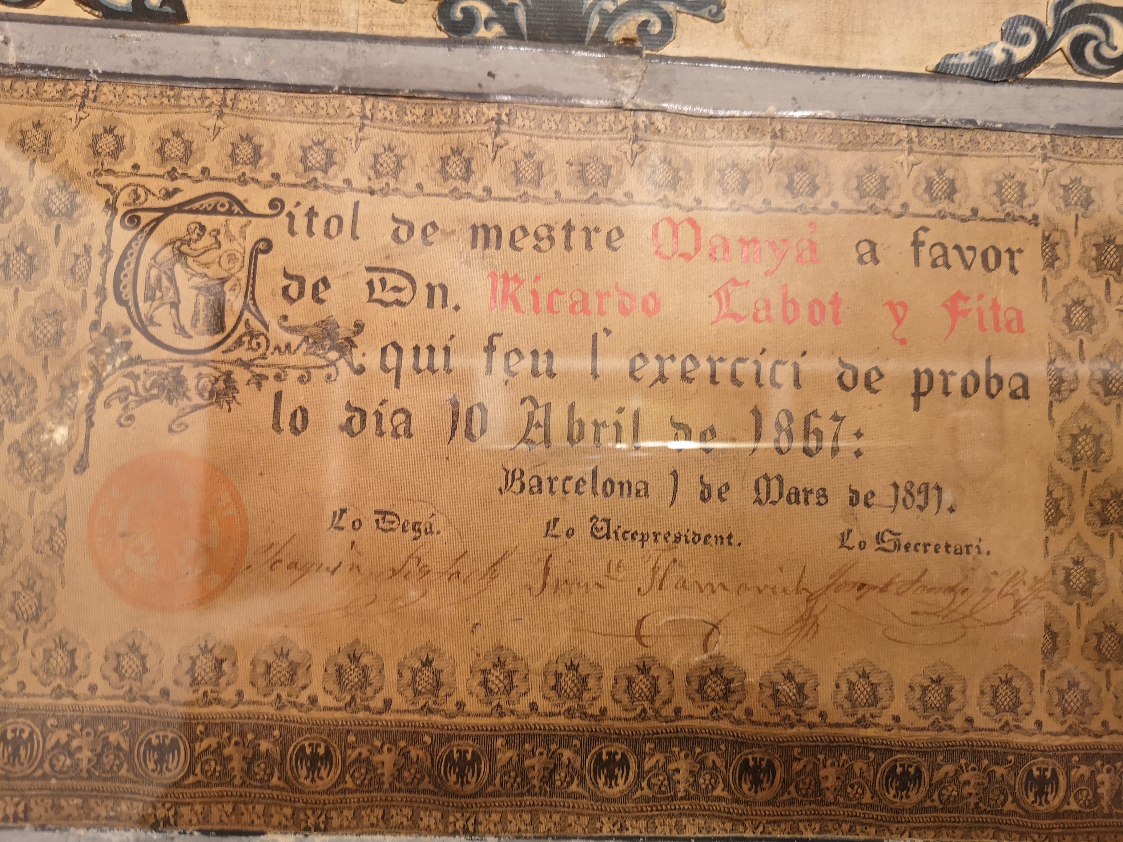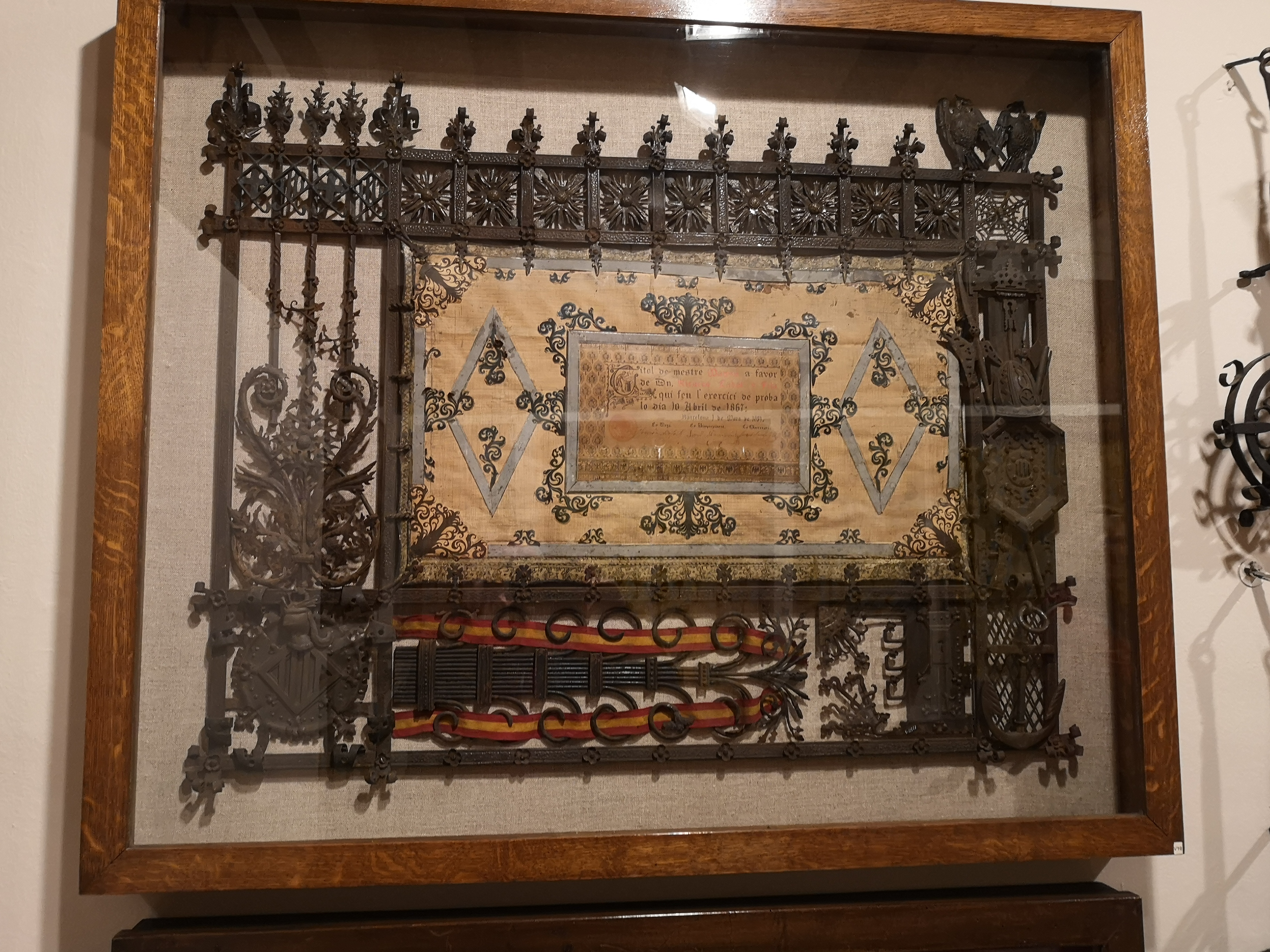 El tìtol està exposat, amb molts altres estris forjats, a un lloc prou desconegut de la ciutat de Barcelona, i que recomano vivament, el museu Frederic Marés, al barri gòtic. Te dos plantes dedicades a imagineria religiosa, en fusta sobre tot, una col-lecciçó notable; i les dos plantes altes son un tutti fruti de col-leccions de tota classe, des de vanos a pipes, segells, en fi, tot l´imaginable. Aquestes dos plantes les recomano a tothom i en particular  als  Diogenes mes o menys descoberts o emboscats que conec.