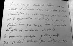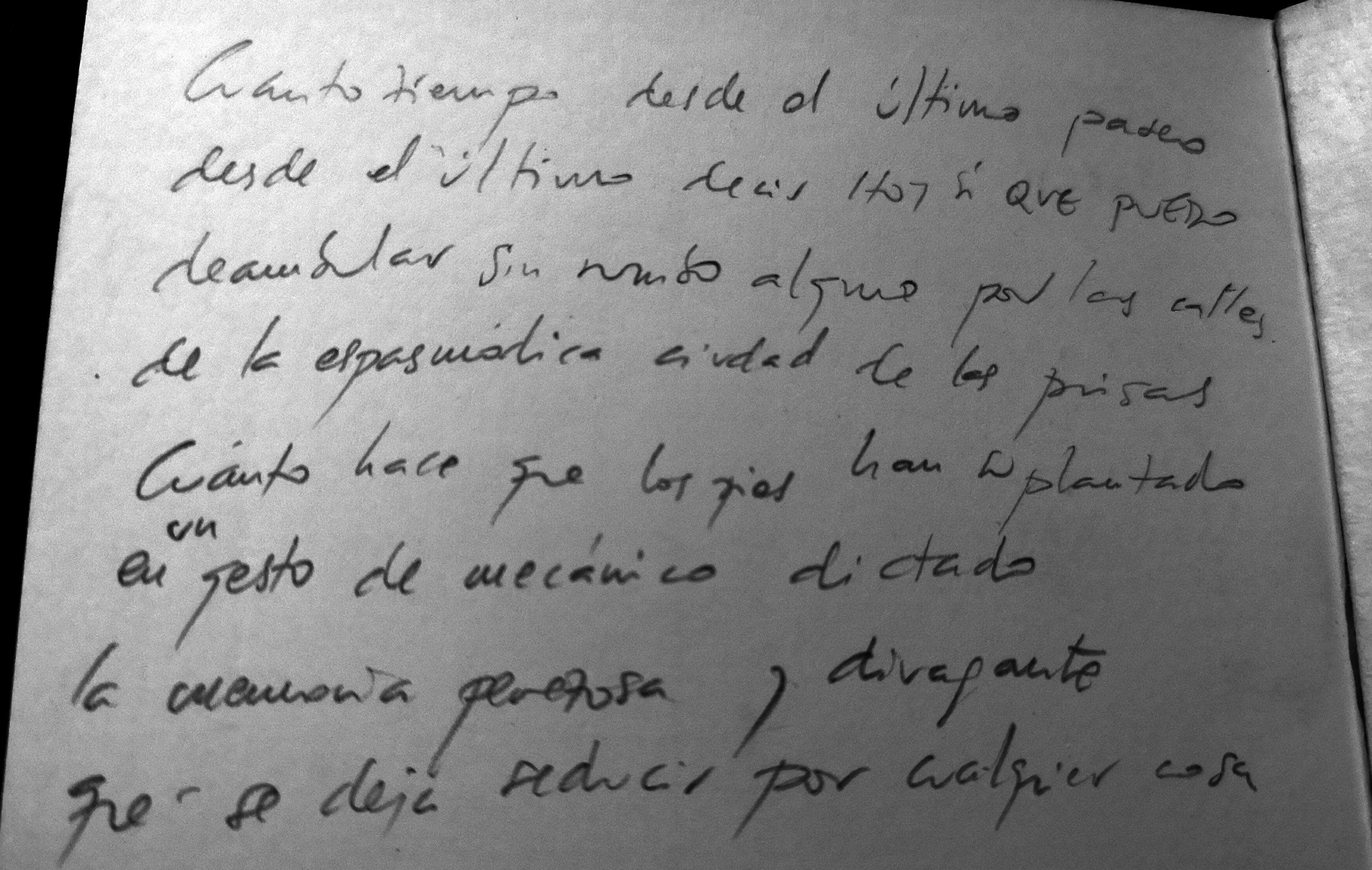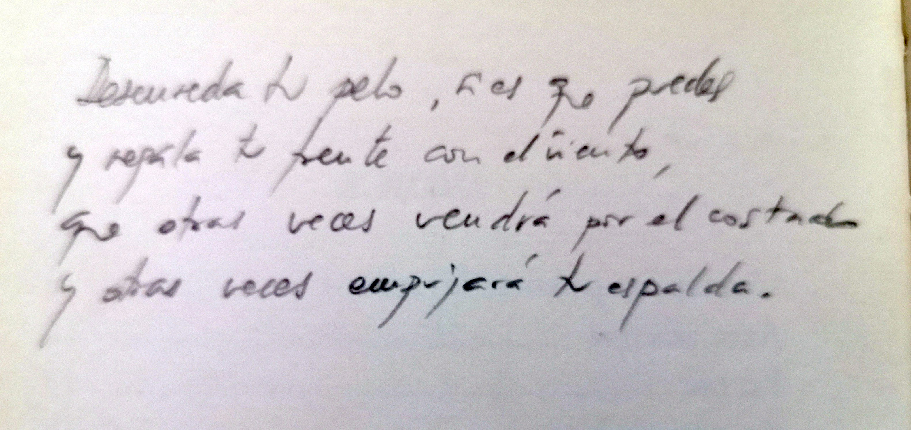 Tenia feia força temps a la tauleta de nit un llibret de poemes de Mario Benedetti, per llegir o fullejar. Pertanyia a un petit lot de llibres que un company de feina ens havia deixat allà per qui els volgués. El company es diu Jose Antonio Arcediano i es poeta, te diversos llibres de poemes publicats. I en el llibre que ell va abandonar i que per fi vaig fullejar, vaig trobar aquests dos poemes que ell tenia escrits i perduts fa cosa de vint anys, anotats en les pàgines en blanc del final del llibre.