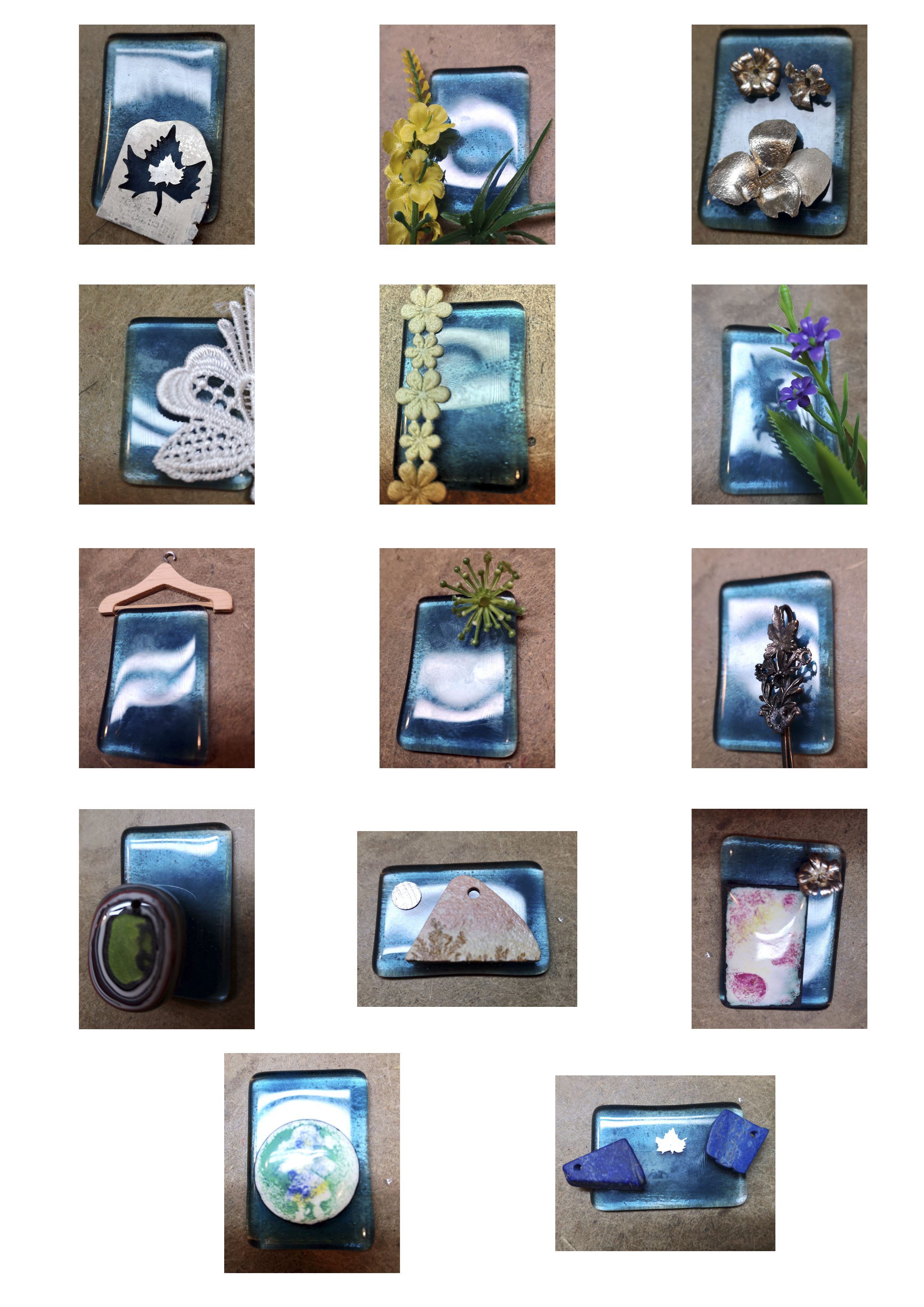 De la sèrie de fulles, que finalment han estat 15 jocs, dotze d´arrecades i tres conjunts, una part ho vaig preparar amb esmalts, no només als forats, idea inicial, sino també sobre la plata de la resta de la fulla. I algun amb l´esmalt just on no hi havien clots. Els resultats, d´aquests, superesmaltats, a la vista, us els presento avui.