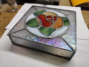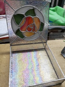 Aquest curs el vull dedicar a aprendre determinades tècniques relacionades amb el vidre, en principi tres molt concretes, el vitrall Tiffany, el emplomat tradicional, i el fusing. Vitrall en Tiffany i emplomat feia uns quan ts anys que tenia ganes de aprendre a fer-ne, i ara començo a cumplir la il-lusió.  Us presento el primer treball, el primer exercici, a veure que us sembla. Aproximadament fa un pam d´ample. L´exercici s´ha acabat amb el que veieu, però la peça la reservo per alguna cosa ulterior una mica mes acabada o interessant, potser una capsa o una peça mural mes gran.