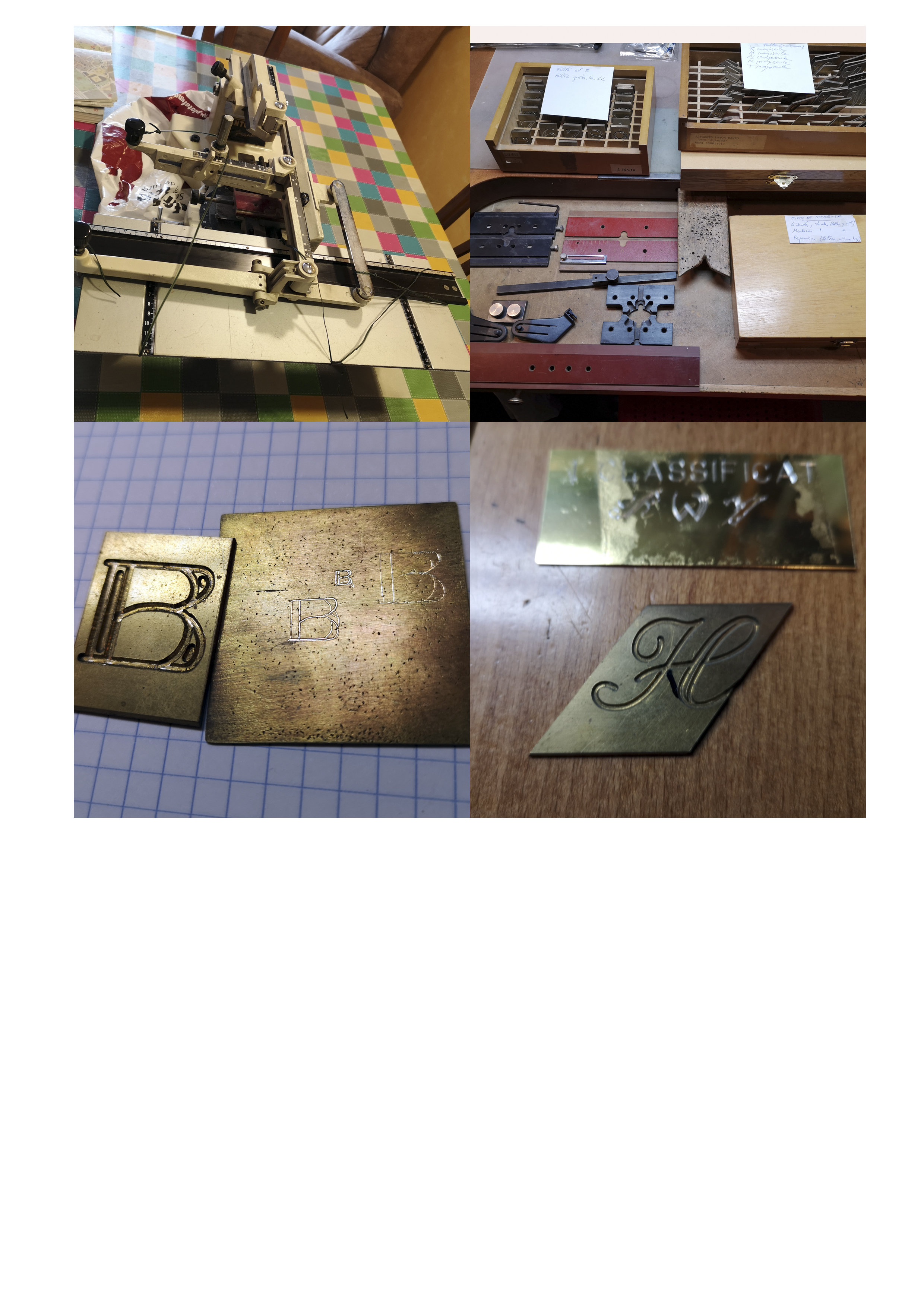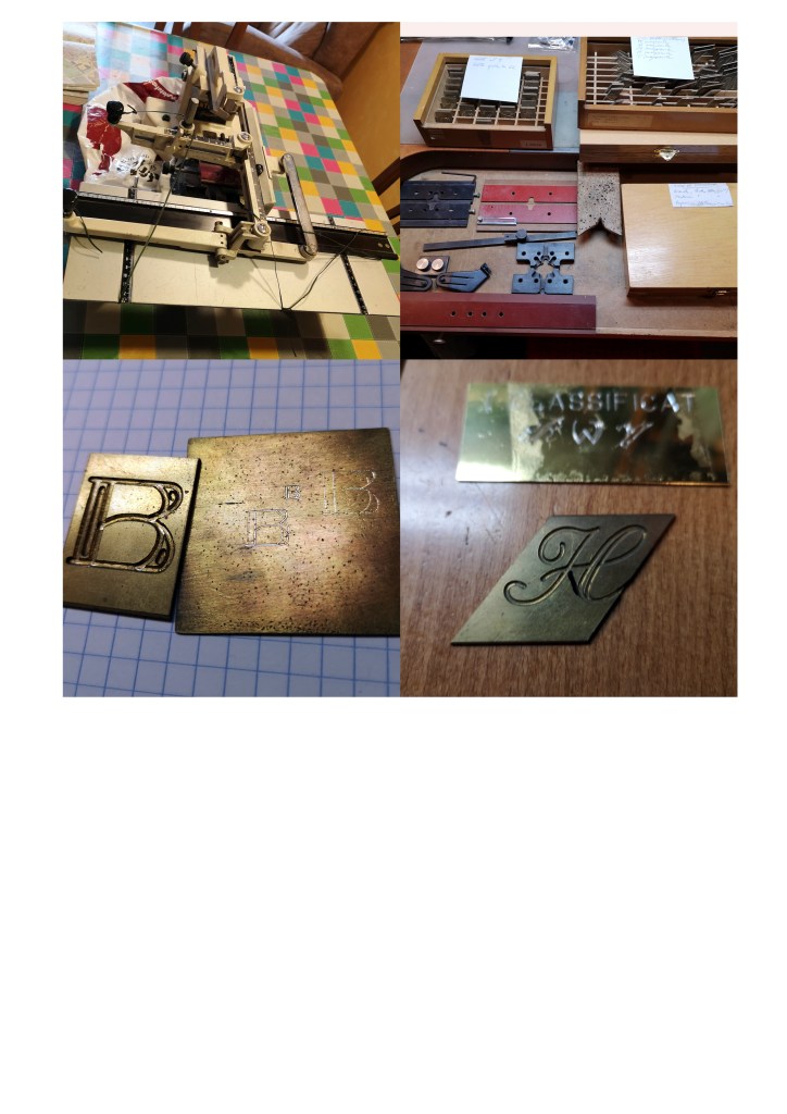 Avui comparteixo una nova (per mi) eina que enriqueix el taller, un pantògraf manual amb el que puc gravar inicials o petits textes en alguna peça de les que faci.