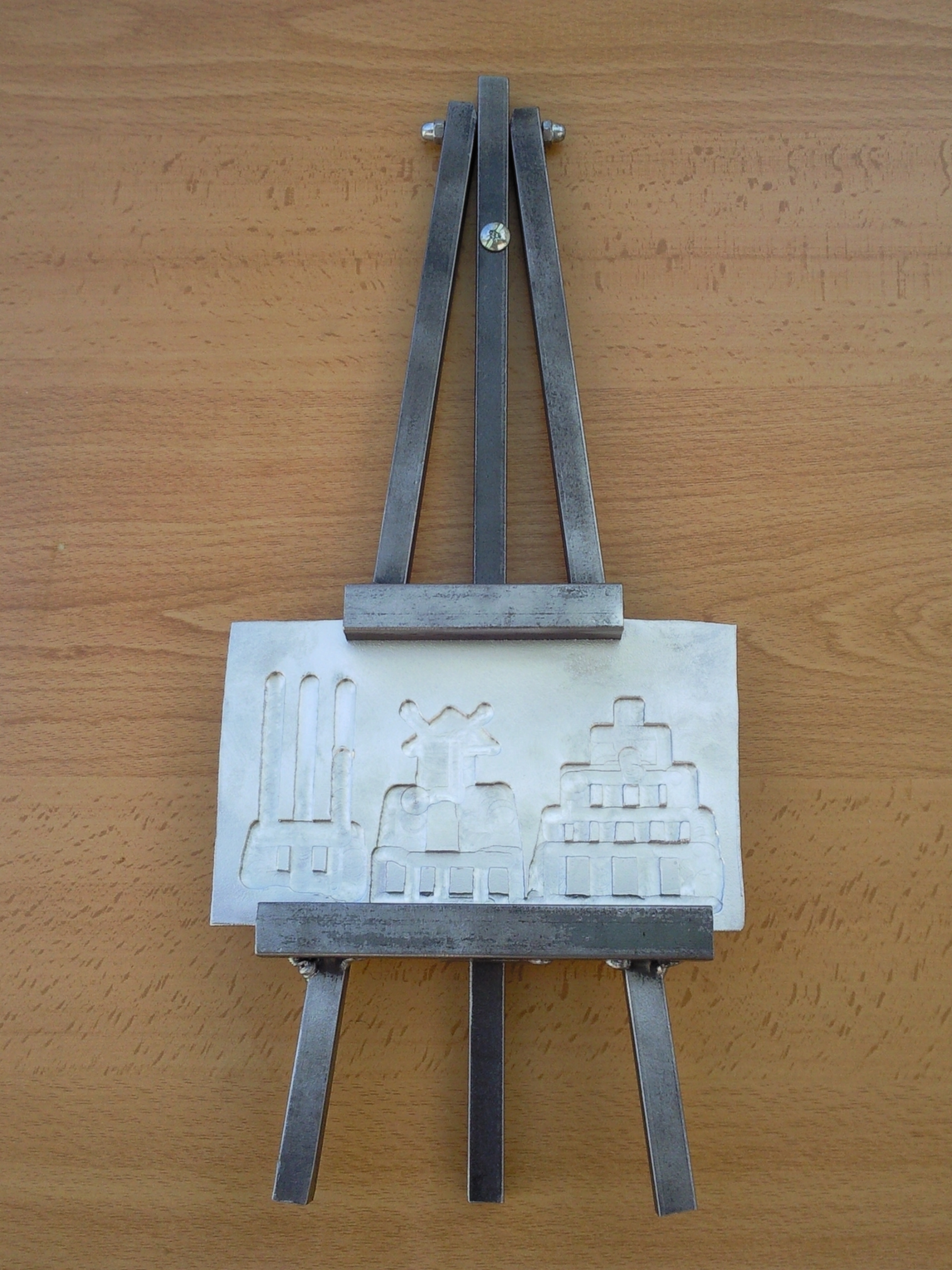 Aquest picaporta, amb el cargol forjat, te la base tallada amb plasma, un tall que m´encanta. Regal a uns amics per la seva casa al Moncayo.