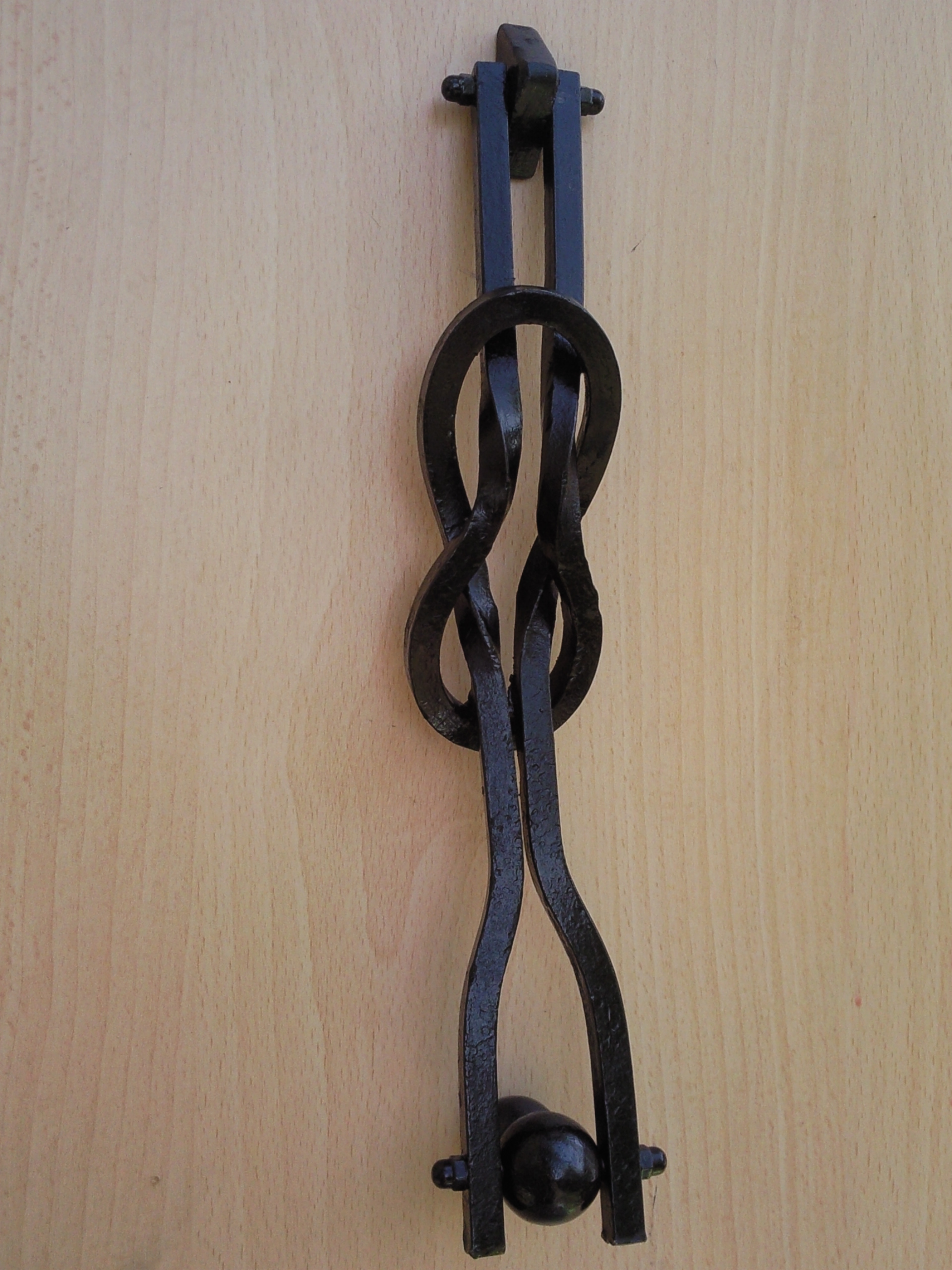 De forja, aquest picaporta, molt senzill, ha agrat molt. I em va tocar. malgrat el meu escàs entusiasme per repetir coses, fer-ne un altre per una familiar. Finalment en varen ser tres. Un m´el vaig quedar, y els dos altres, estàn, que jo sapiga, a Corbera de Llobregat i a Moral d´Hornuez (Segovia).